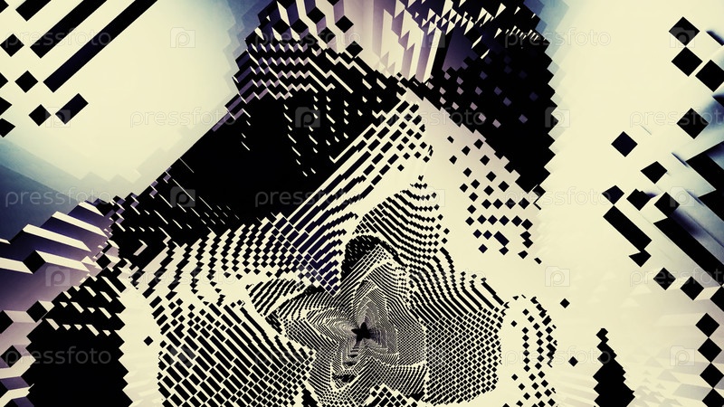 Геометрический туннель с квадратным психоделическим узором. Дизайн. Поворачивающийся тоннель со квадратными стенами и волнами. Волнообразные квадратные стены вращающегося тоннеля