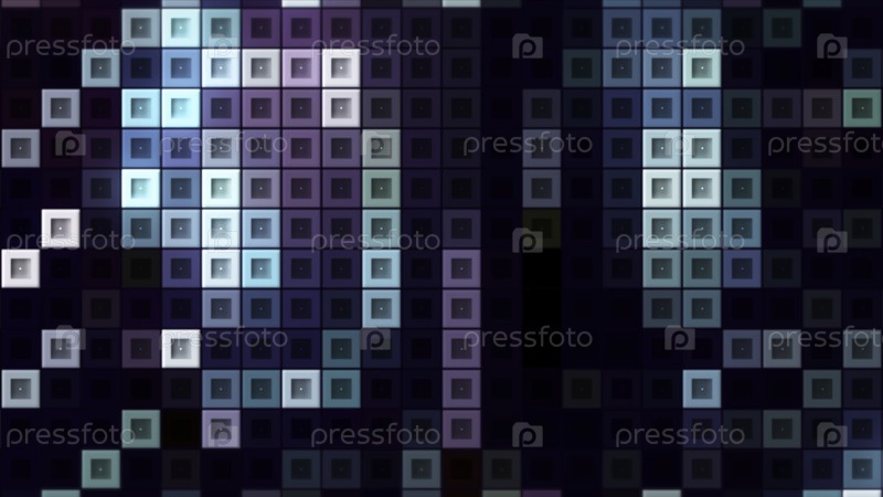 Фон с красочными квадратами в тетрисе. Движение. Электронный тетрис с движущимися неоновыми квадратами. Стильный фон со смешанными цветовыми квадратами, двигающимися в стиле ретро игры