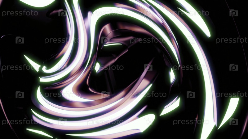 Абстрактная вращающаяся фигура с неоновыми линиями Дизайн 3D-фигурка из кривых и неонных линий вращается в пространстве Абстрактная футуристическая фигура с неоновыми линиями вращается во тьме