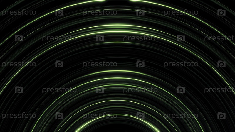 Абстрактный темно-зеленый круг, бьющийся на черном фоне. параллельные мерцающие изогнутые линии, движущиеся медленно