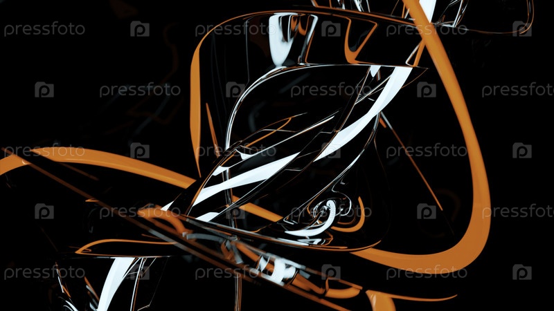 Энергетические нити скручиваются в потоке на черном фоне. Дизайн. Красочная запутанная спираль