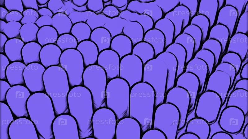 Спускающиеся вверх и вниз столбы фиолетового цвета. Дизайн. Стиль мультфильма с волнистым фоном длинных 3D-форм