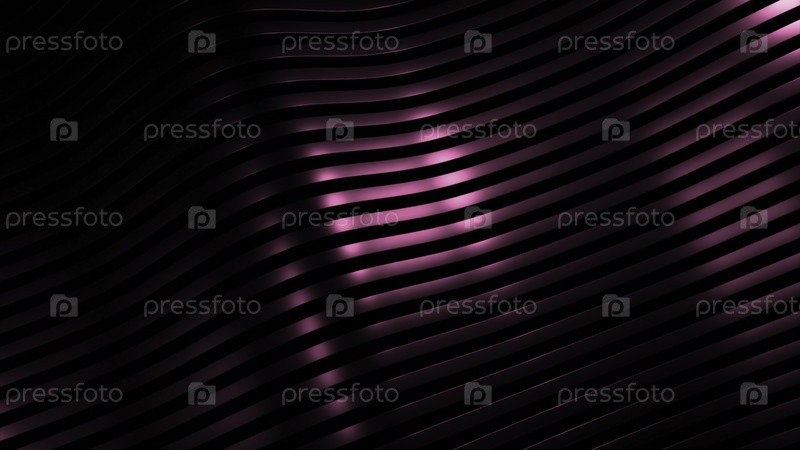 3D-фон с движущимися волнами полос. Дизайн. Металлические ленты перемещаются волнами на черном фоне. Шелковистые линии с металлическим блеском передвигаются в 3d-волнах