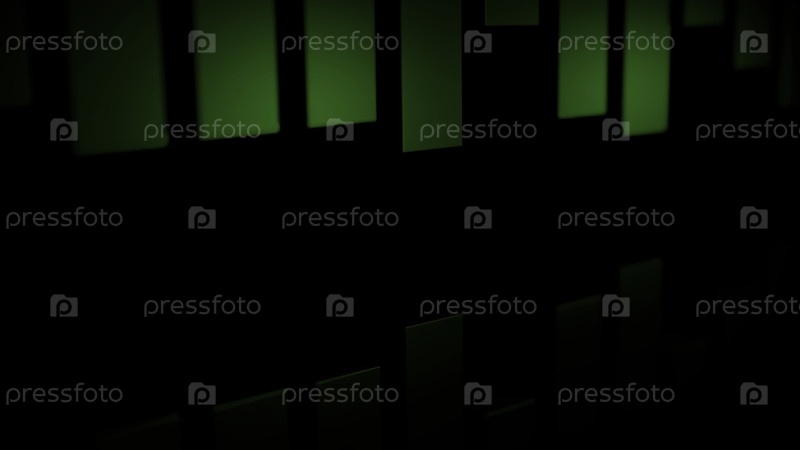 Черный фон с появляющимися полосками. Дизайн. Короткие зеленые полоски в ряд, выполненные в мультфильме-анимации