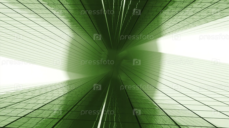 Анимация падения между зданиями. Дизайн. 3D стеклянные стены с отражением во время падения. Погрузитесь в виртуальное падение на высокой скорости между зданиями. Головокружительный виртуальный падение между стенами в тумане