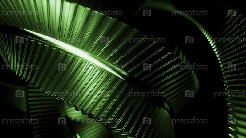 Современная 3D-иллюстрация металлических лент, размахивающих.Дизайн.Зелёные ребристые металлические полосы