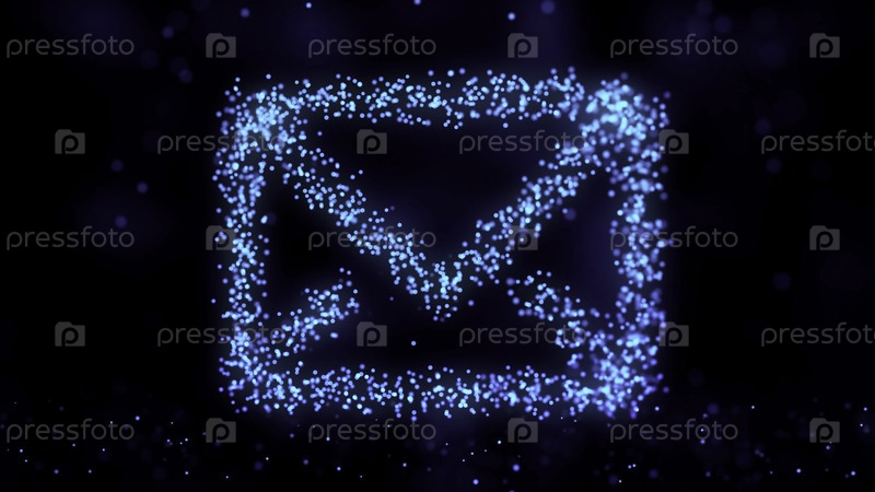 Анимация сети сплетения из символа электронной почты на красочном фоне с течением частиц сплетания