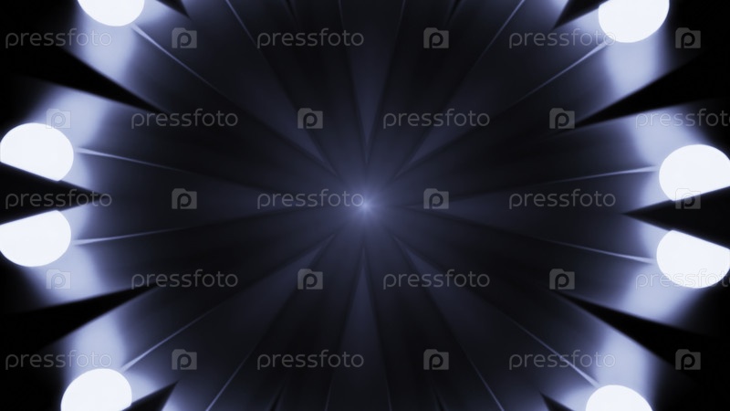 Пульсирующая гипнотическая анимация в центре. Дизайн. Темные фоновые лучи с пульсирующими световыми импульсами. Движущиеся световые импульсы на лучах гипнотической анимации
