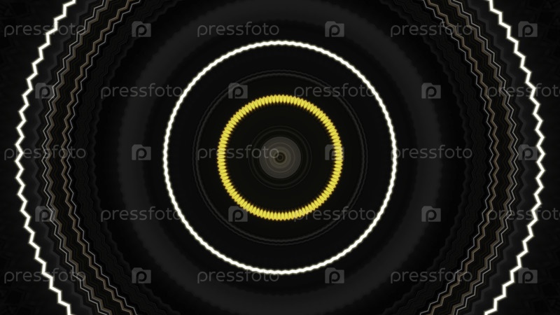 Красочный калейдоскопический геометрический орнамент мигающих кругов, бесшовная петля. яркие кольца в движении с эффектом световой волны, графика движения