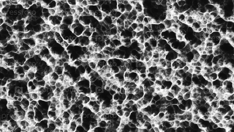 Яркая светящаяся жидкость кипит на поверхности.Движение.Перемещающаяся текстура на поверхности жидкой плазмы.Светящаясь плазма с черными движущимися молекулами