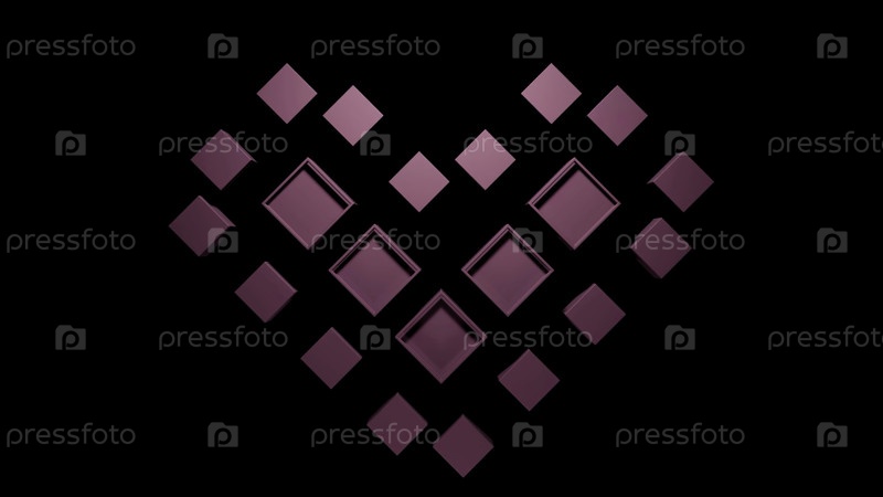 Черный фон.Дизайн.Маленькие розовые квадраты составляют сердце и движутся в анимации в одном направлении