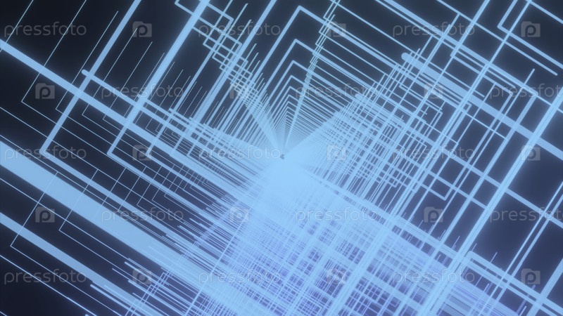 Синий и розовый фон. Дизайн. Яркая абстракция белых световых фрагментов, создающая туннель, который вращается и движется глубже