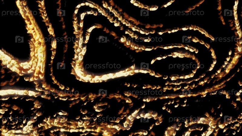 Абстрактные изгибающие узкие полосы крошечных светящихся частиц на черном фоне.Движение.Изогнутые силуэты сияющей пыли