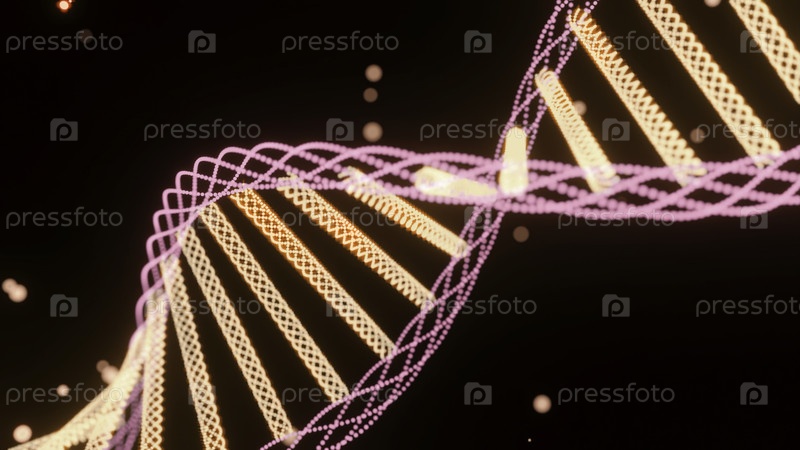 Красивая спираль ДНК вращается с волшебными светящимися точками Волшебная спирала ДНК в киберпространстве