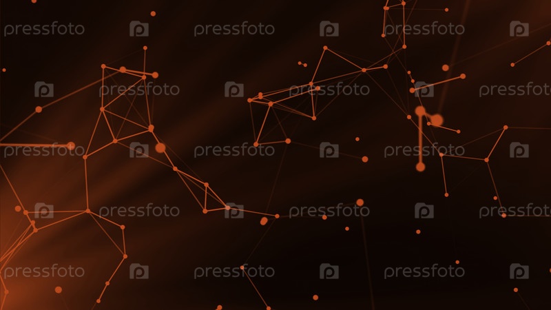 Синий и красный фон. Движение. Яркий фона, на котором есть анимация, в которой различные части с молекулами и ветвями от них движутся вокруг фона и вращаются