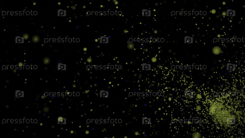 Шторм из множества цветных точек. Дизайн. Чреватый поток красочных точек на черном фоне. Многие точки в быстром потоке движутся как рой