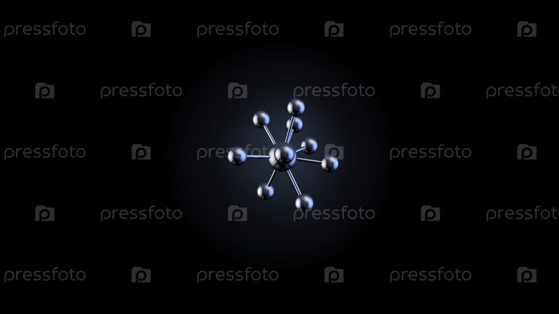 Реалистичная вращающаяся модель молекулы Красивая молекулярная структура в микроскопе, растущая на черном фоне Анимированная молекула Серебро 3d Бесшовный цикл Глубина поля