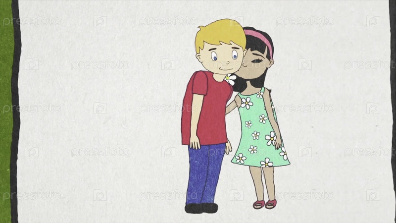 Анимация мультфильма, где мальчик дарит цветок девушке и она целует его в щеку