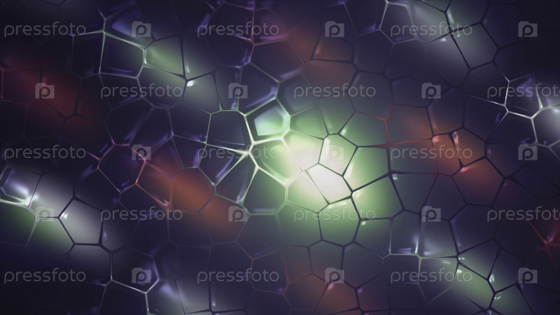 Текущие мозаичные пузырьки на поверхности. Движение. Красочный фон с движущимися пузырями на поверхности. Прекрасные 3D-пузыри двигаются и протекают по поверхности