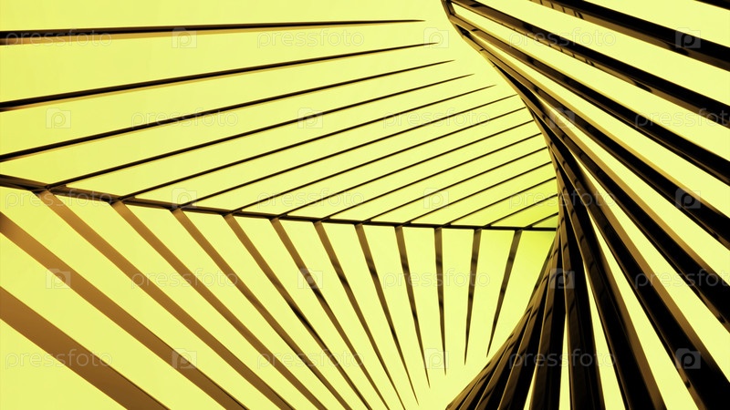 Желто-зеленый блестящий фон.Дизайн.Абстракция, сделанная как туннель с черными полосами, движущимися изнутри