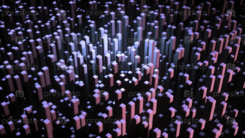 Абстрактная 3D-анимация с восходящими цветовыми квадратами. Анимация. Свертываемые вверх 3D прямоугольные блоки с красивыми многоцветными огнями