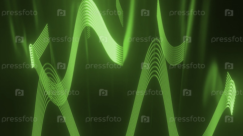 Столбы с волнистыми линиями. Дизайн. Светящиеся волнистые линии нарисованы вокруг металлических столбов. Пространство лабиринта с металлическими столбами и волнистыми линиями