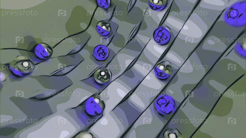 Абстрактные узкие дороги с качающимися небольшими сферическими объектами. Дизайн. Красочные 3d бусы, в стиле мультфильма