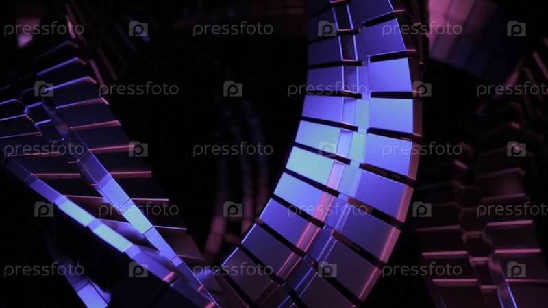 3D спираль с вращающимися металлическими линиями. Дизайн. 3D-анимация генерируемой металлической спирали с вращающимися линиями. Стильная металлическая спирала вращается на черном фоне