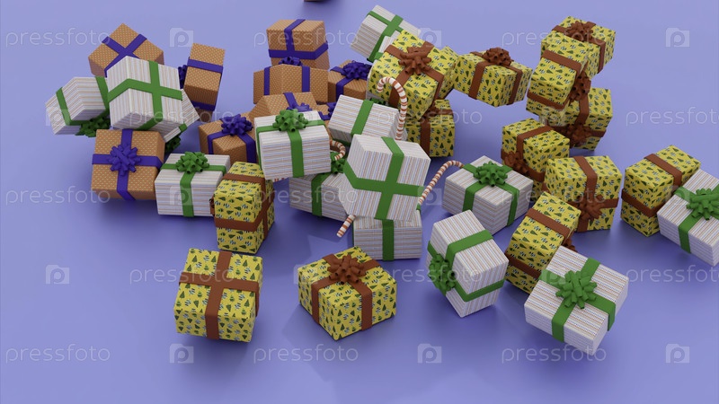 Синяя абстракция. Дизайн. Коробки с новогодними подарками выходят в 3D-формате на тонком цветном фоне