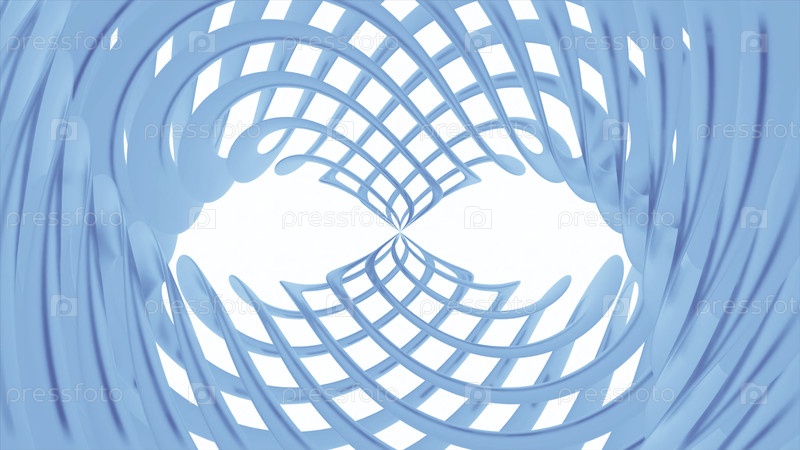 Абстрактный гипнотический фон скрещенных колец, создающий оптическую иллюзию. Дизайн. Светло-синие круговые формы на белом фоне