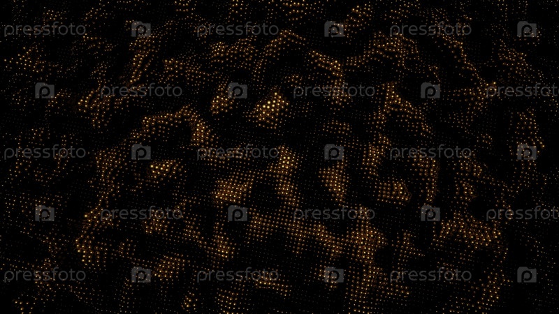 Абстрактная зернистая текстура создает эффект холмистой местности, бесшовную петлю. Дизайн. Оранжевый и черный перемещаются и трансформируют кубическую поверхность