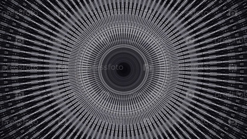 Абстрактная воронка мигающих геометрических фигур, кругов или колец, бесшовный цикл. Психоделические движущиеся светлые круглые формы, тест на обнаружение эпилепсии в темно-синих и белых цветах