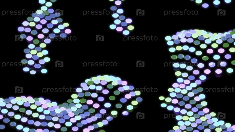 Абстрактный пиксельный рисунок с красочными кругами, размахивающимися как облака на черном фоне. Дизайн. Мрачащие и прыгающие многоцветные круги