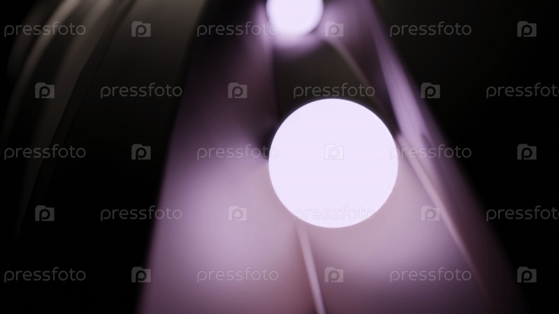 Светящиеся 3D шары, движущиеся по поверхности.Дизайн.Неоновые шарики качаются вдоль трехмерной трассы.Светящие шары колеблются по пути лабиринта