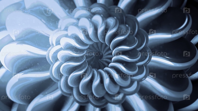 Закрученная петля в абстракции. Движение. Синий и серый фон, на котором вращается пружина