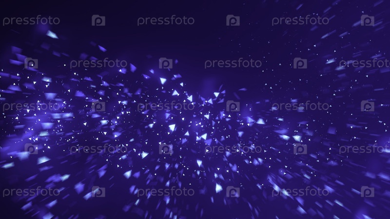 Синие светящиеся треугольные частицы, создающие абстрактный цифровой фон