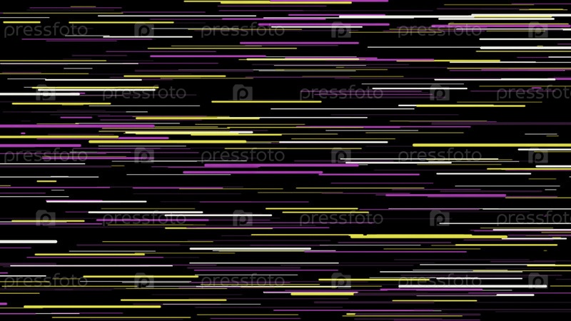 Абстрактная анимация ярких неоновых лучей разных размеров, летящих горизонтально на черном фоне. Анимация. HD-анимация с неонными лучами. Фонд движения