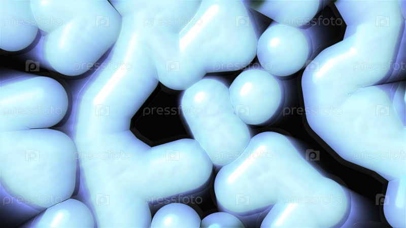 Абстрактное 3D преобразование овальных форм. Движение. Размытые светящиеся пузырьки, мигающие