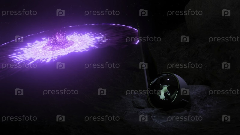 Флаг на планете в космосе. Дизайн. 3D-анимация флага на Марсе на фоне взрыва планеты. Могила астронавта с флагом на фоне космического взрыва