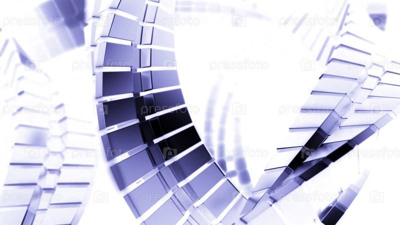 Абстрактная голубая металлическая изгибшаяся цепь с световыми вспышками.Дизайн.Подвижные металлические кольца