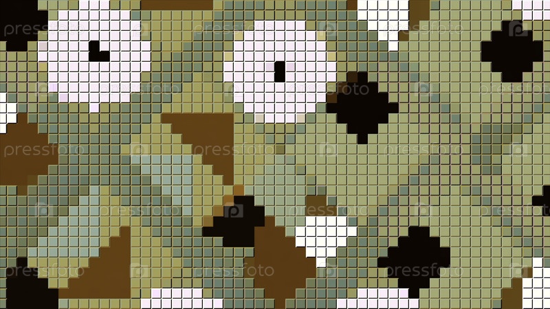 Мозаика со многими маленькими цветными квадратными кусочками. Движение. Трансформация геометрических пиксельных форм