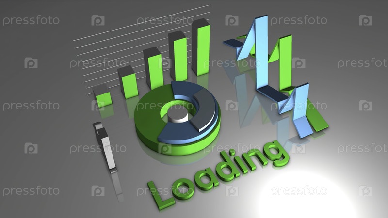 Абстрактные графики и загрузочная надпись.Движение.Круглая диаграмма, окруженная графиками и словом loading