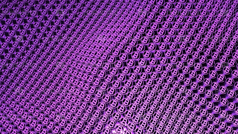 Ярко-фиолетовый фон. Дизайн. Небольшие круглые формы внутри с буквой B в абстракции колеблются в разных направлениях. Высокое качество 4k кадры