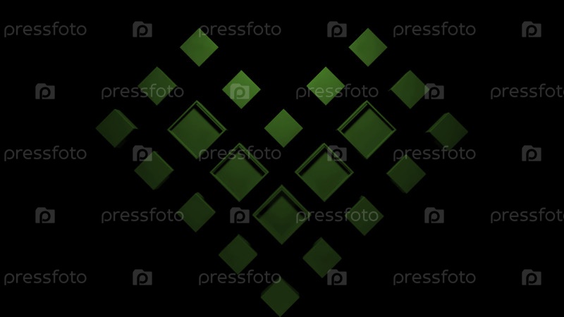 Черный фон. дизайн. красивое зеленое сердце, сделанное из квадратов, которые двигаются в анимации. высокое качество 4k кадры