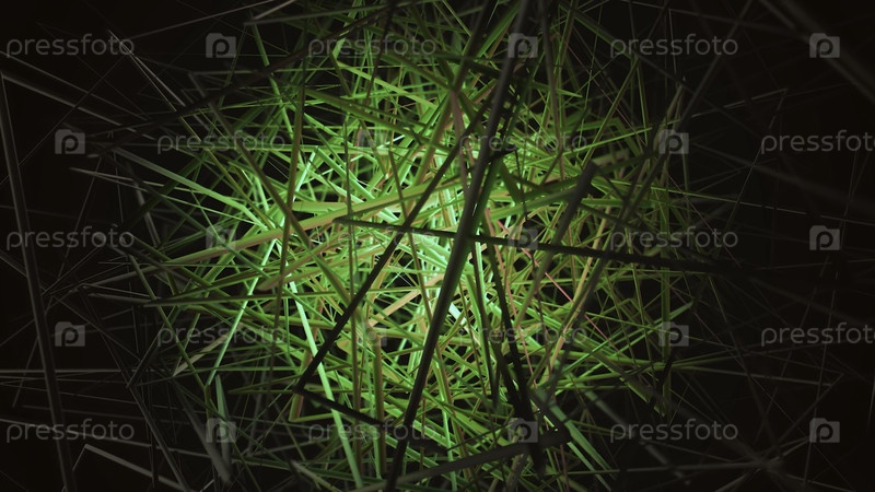 Анимация цветных запутанных нитей на черном фоне.Анимация.Цветовая группа линий на черном фоне