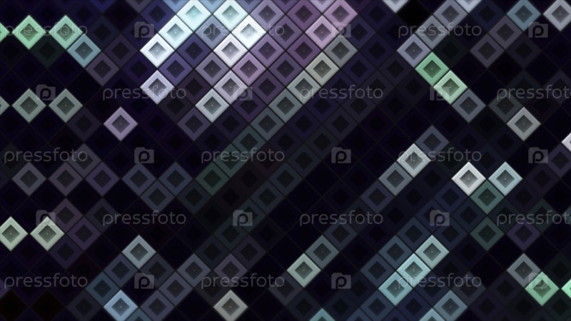Движущиеся квадраты тетриса. движение. электронное поле с движущимися цветовыми квадратами. красочные неонные квадраты двигаются как в стиле Tetris