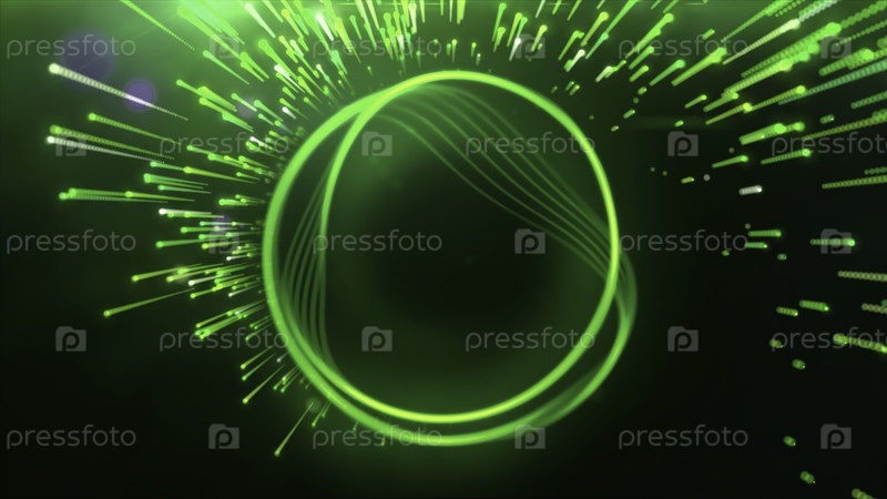 Яркий зеленый фон. движение. яркие неоновые - горящие линии в анимации блестят разными цветами и создают узоры