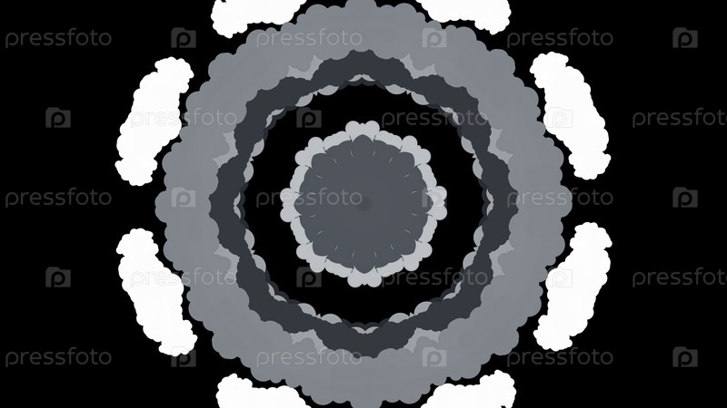 Черно-белое абстрактное движение круглых форм с эффектом калейдоскопа