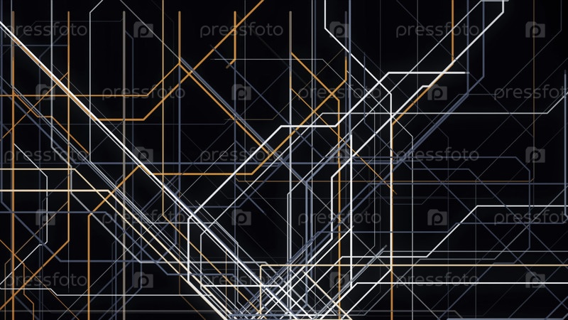 Бесконечное количество красочных линий создают сложную структуру трубопровода, изолированного на черном фоне