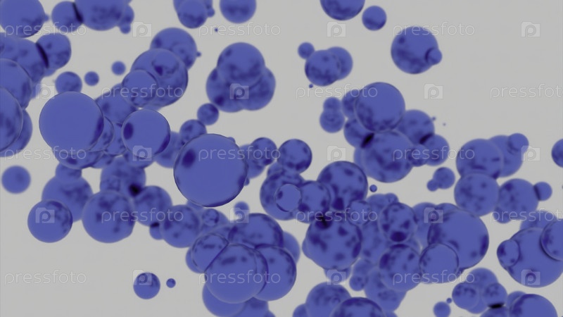 Двигающийся поток ярких шаров. Дизайн. Восходящий поток ярких 3D-пузырей в пространстве. Яркие пузыри быстро перемещаются в потоке